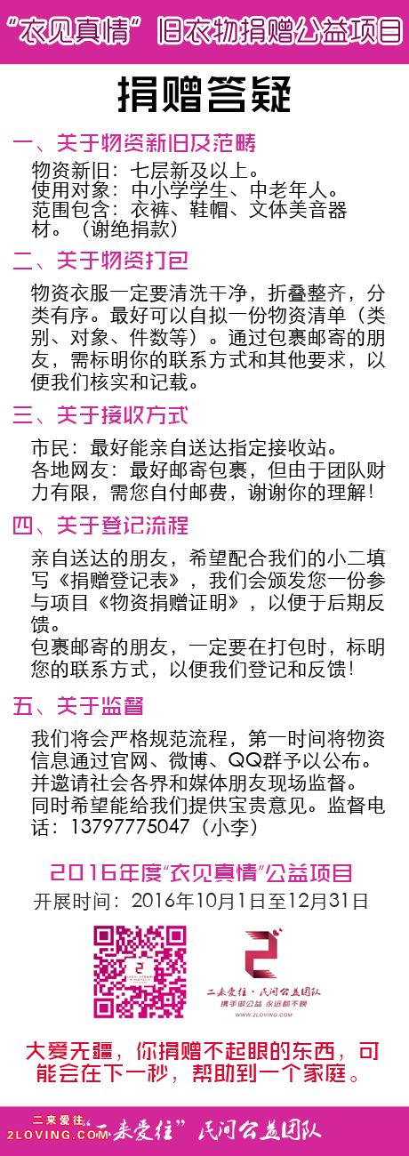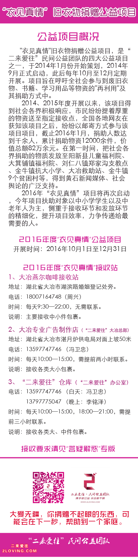 2016年度“衣见真情”旧衣物捐赠公益项目