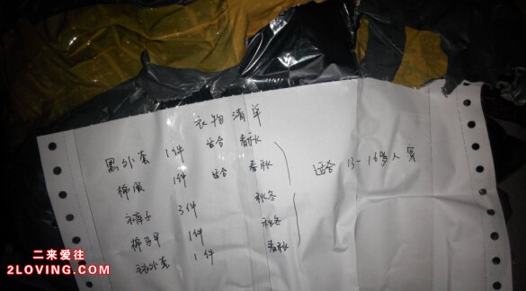 14岁男式衣服:裤子3件,外套1件,棉服1件,黑色外套1件,棉衣外套1件。 由于快递单的信息非常模糊,看不清爱心人士的电话和姓名,望爱心人士与我们取得联系,方便我们登载,十分感谢。 ![]() ![]() ![]()