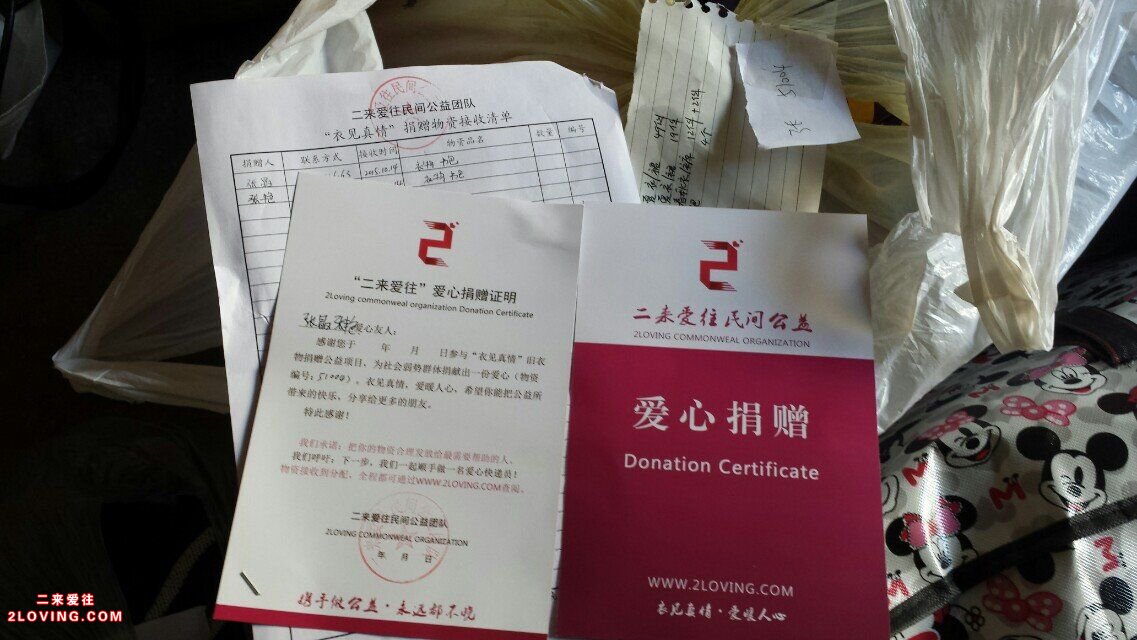 接收后36小时内更新。如已捐物品但尚未更新或登载信息有误,请点击二来爱往确认。