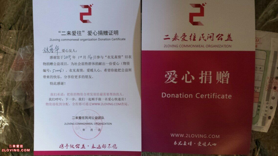 接收后36小时内更新。如已捐物品但尚未更新或登载信息有误,请点击二来爱往确认。