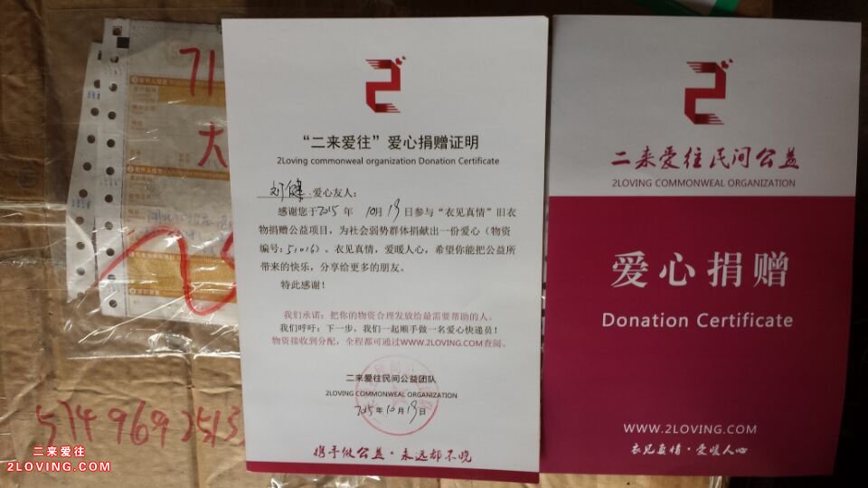 接收后36小时内更新。如已捐物品但尚未更新或登载信息有误,请点击二来爱往确认。