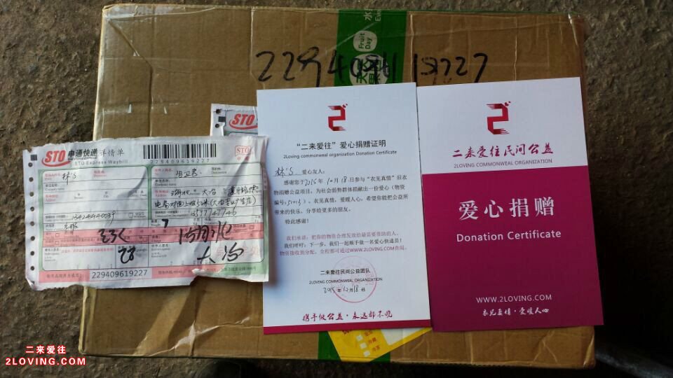 接收后36小时内更新。如已捐物品但尚未更新或登载信息有误,请点击二来爱往确认。