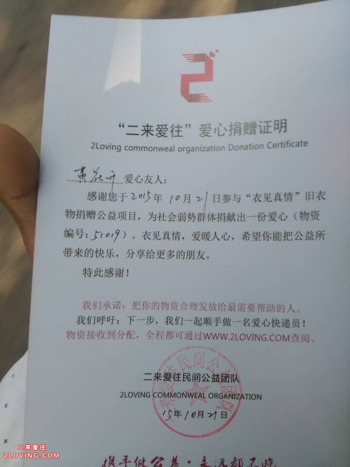 接收后36小时内更新。如已捐物品但尚未更新或登载信息有误,请点击二来爱往确认。